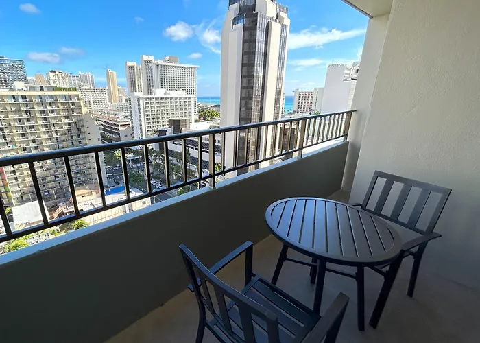 Situated only 0.7 km from the upscale beachfront Moana Surfrider Lodging, 1-bedroom Royal Kuhio 1713 - Spacious Studio With Stunning City Views In The Heart Of Waikiki! invites guests to relax at a sunny patio.
